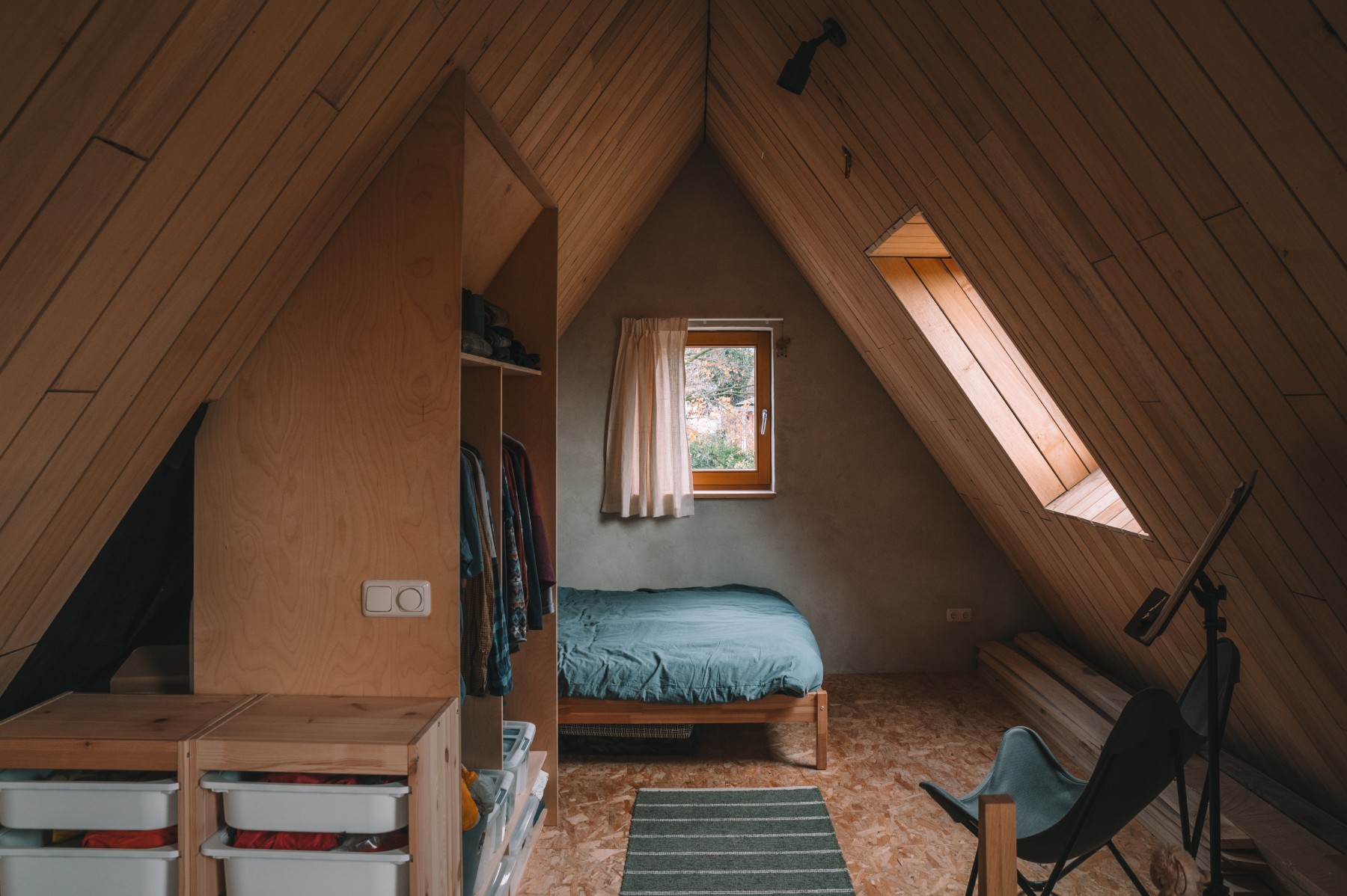 Mieke en Erik zijn erg avontuurlijk en leven veel buiten. Een zeilboot opknappen, boulderen, mediteren in het bos en ultra lange fietstochten van wel 300 kilometer. In het huis zit alles wat ze nodig hebben, dit maakt het lekker functioneel en gezellig. Een lange kapstok voor natte regenjassen, een ronde tafel voor gezellige avonden, het hout en de grote ramen stralen rust uit en een knusse slaapkamer van hun dochtertje Heike.
