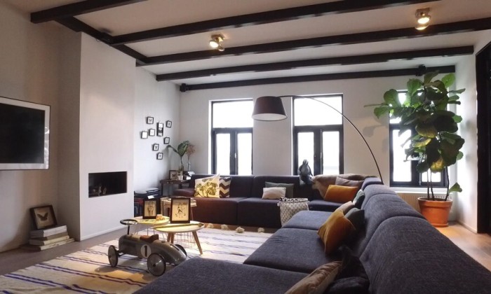 Bettina en Driss leren elkaar in 2005 op de werkvloer bij een internationaal reclamebureau kennen. Ze besluiten samen een huis te kopen in de binnenstad van Amsterdam en vielen als een blok voor dit pand. 'Het geeft een ‘kruip door, sluip door’ gevoel, heeft veel ramen en de buurt is relatief rustig', zegt Bettina.